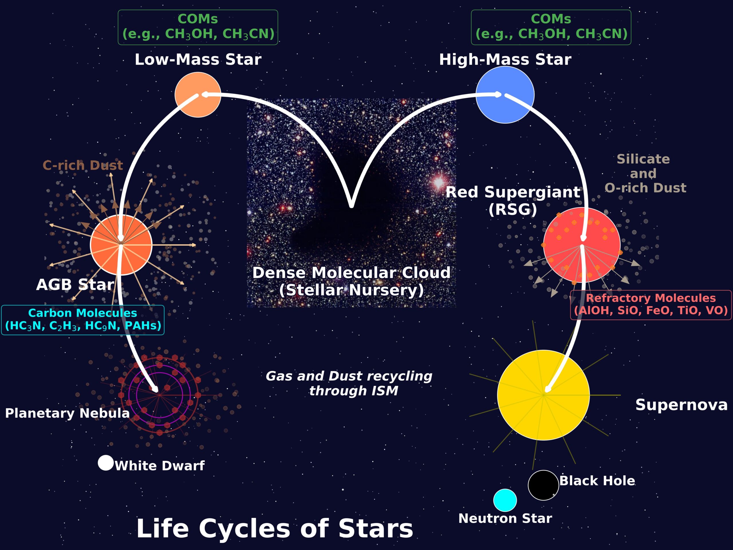 My passion for astrophysics and astrochemistry drives me to explore the mysteries of the universe. As a researcher, I have dedicated years to analyzing multi-wavelength observations—from radio, millimeter, and submillimeter wavelengths to infrared—alongside astrochemical simulations to detect molecules and study their distribution, formation, and evolution across different stages of the stellar life cycle. My research aims to understand how these molecules trace the physical and chemical conditions of diverse cosmic environments.